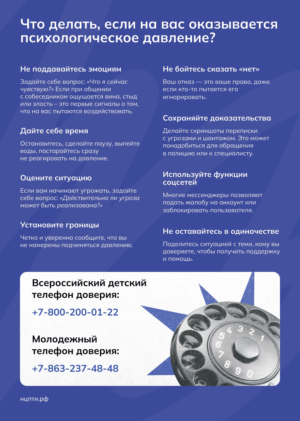 8-800-2000-122 - Единый общероссийский телефон доверия для детей, подростков и их родителей